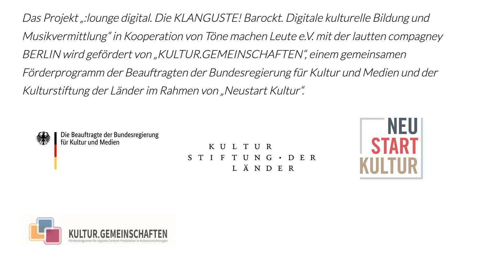 Für die lauttencompagney BERLIN hat das Team der experimentellen musikvermittlung ein neues digitales Format für Kinder entwickelt: DIE KLANGUSTE barockt!